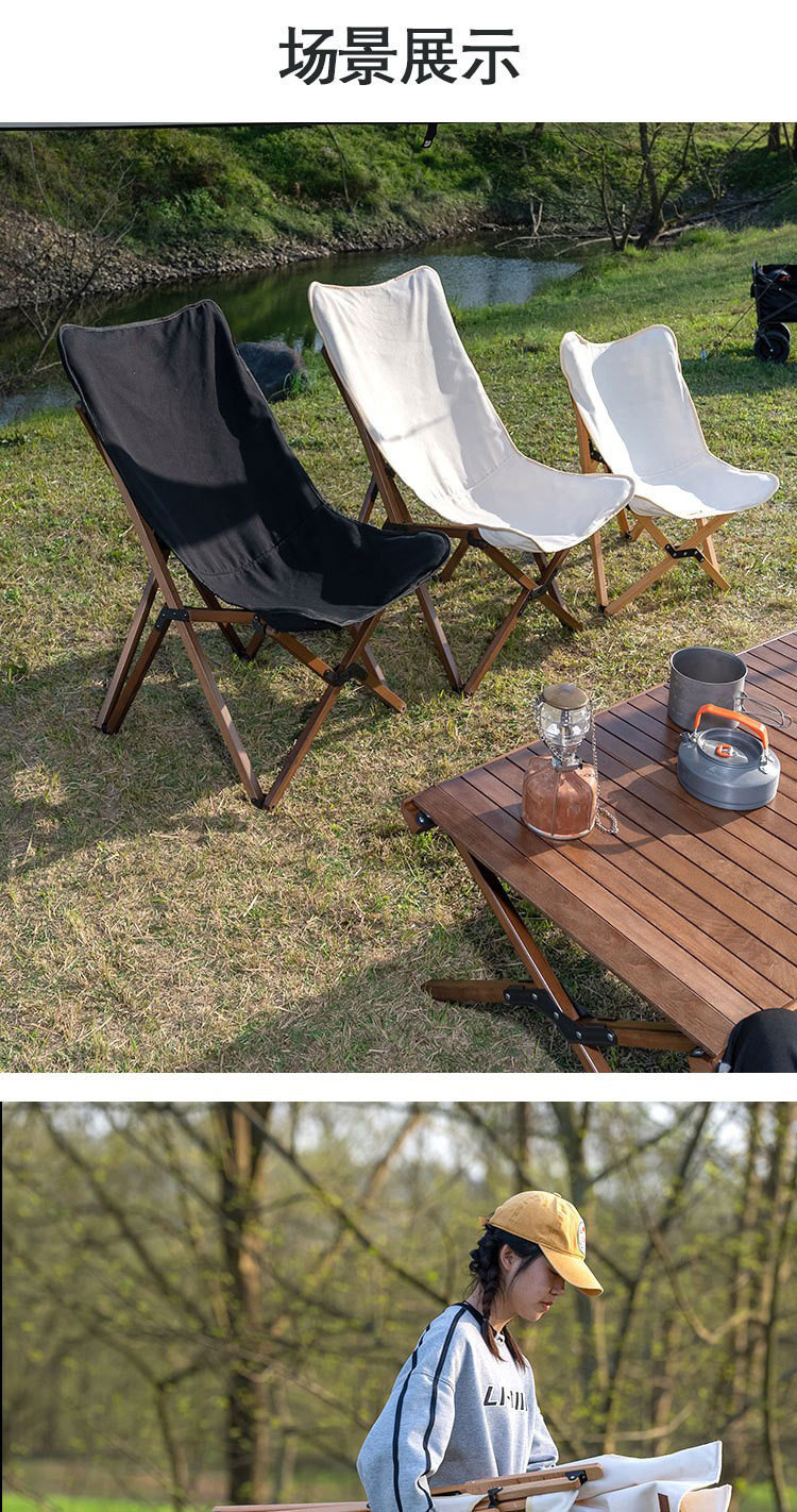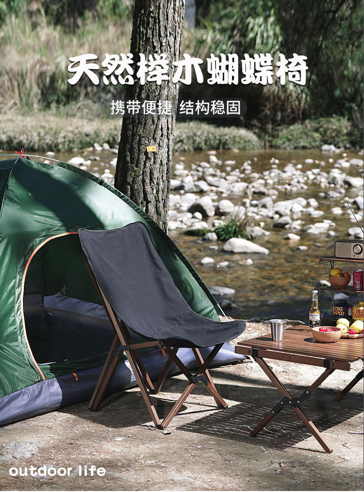 Balises actives: Chaise de papillon de voyage portable en bois massif pliable